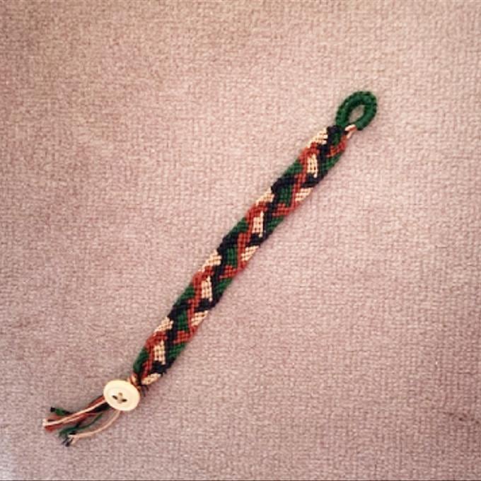 グリーン、ブラック、ライトブラウン、ブラウンの組み合わせで編みました。